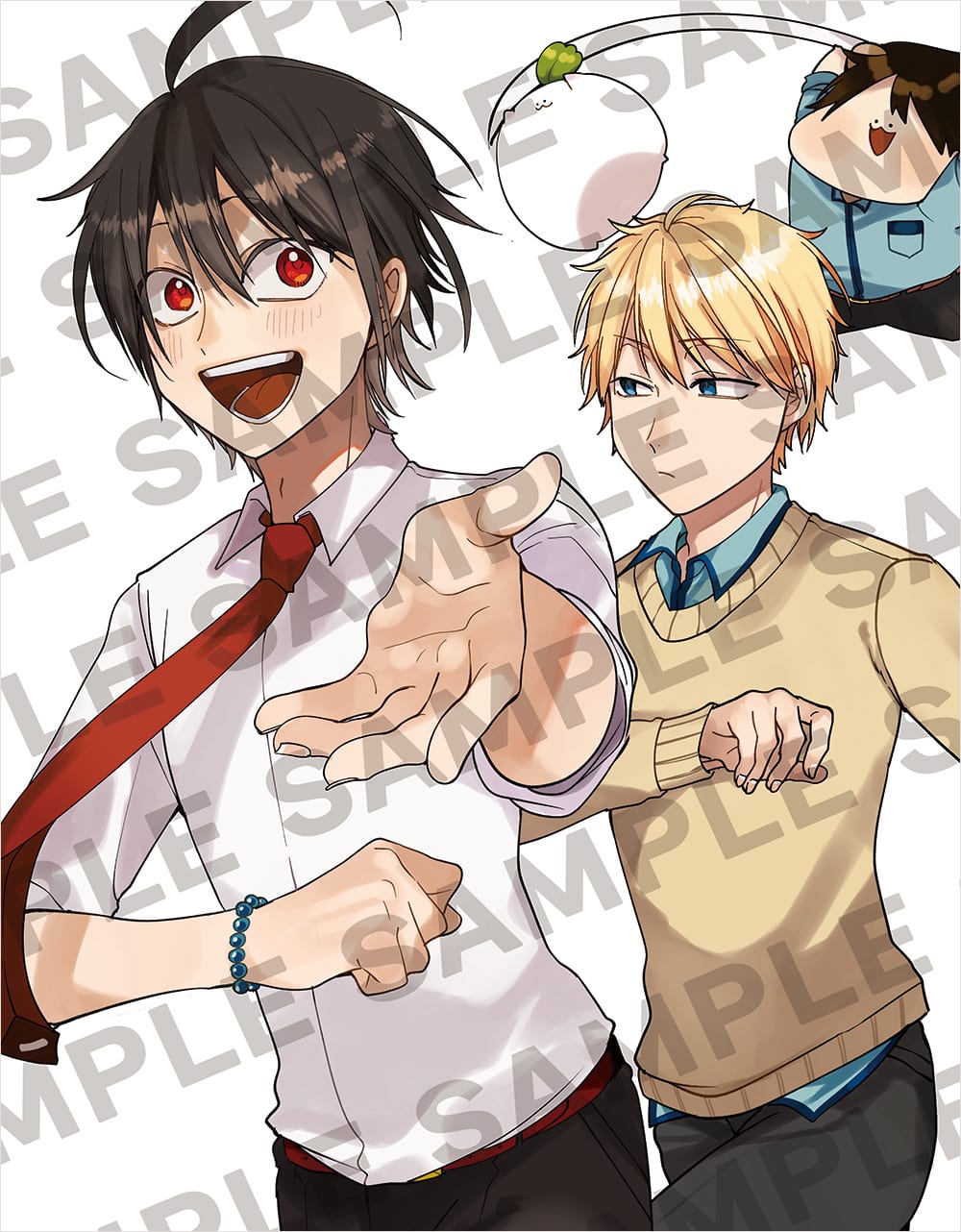 原作者・田中まい先生が描き下ろしたBlu-ray第1巻のアウターケースイラストが到着!全6巻のアウターケースイラストをつなげると1枚のイラストになる仕様で、今回のイラストには晴明と佐野の他に、狸塚とマシュマロがぶらさがっている柳田らしい姿も…!?続きのイラストをお楽しみに!